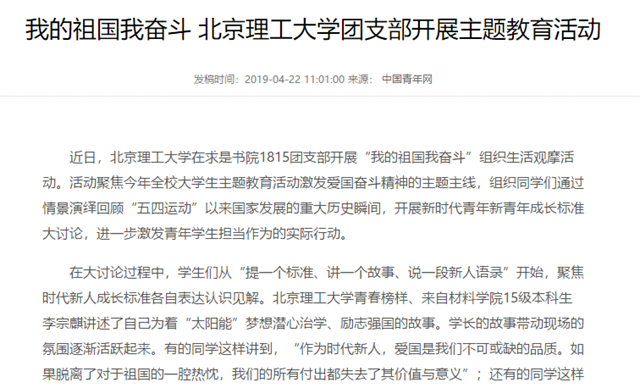 【中國青年網(wǎng)】北京理工大學(xué)團支部開展主題教育活動