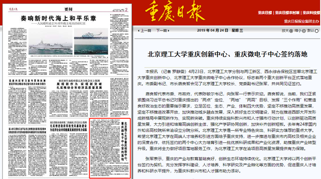 【重慶日報】北京理工大學重慶創(chuàng)新中心、重慶微電子中心簽約落地