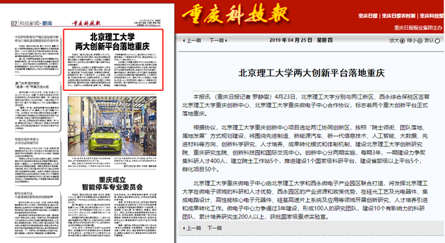 【重慶科技報(bào)】北京理工大學(xué)兩大創(chuàng)新平臺(tái)落地重慶
