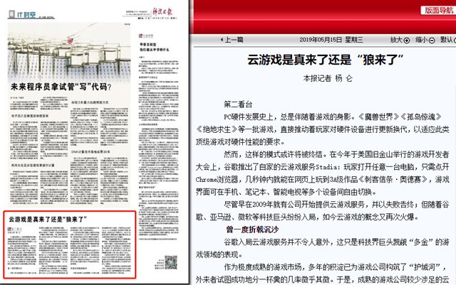 所謂云游戲,是云計算技術在游戲領域的一種應用?!巴ㄋ椎卣f,云游戲就是將游戲放在云服務器上去運行,玩家終端無需安裝游戲,也無需擁有圖形運算和數(shù)據(jù)處理能力。”北京理工大學計算機學院副教授閆懷志告訴科技日報記者。