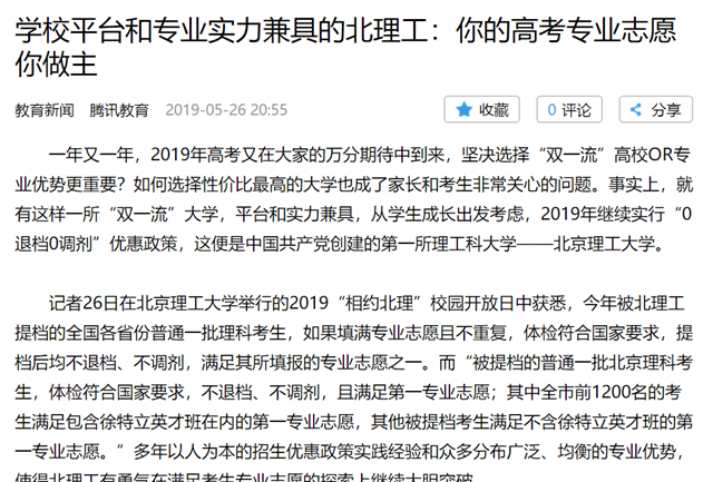 原文表題:學校平臺和專業(yè)實力兼具的北理工:你的高考專業(yè)志愿你做主