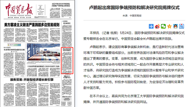 【中國貿(mào)易報】盧鵬起出席國際爭端預(yù)防和解決研究院揭牌儀式