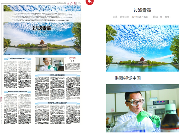 過濾PM2.5、殺菌、分解臭氧,如今一張MOF膜可實(shí)現(xiàn)的功能越來越多。“‘北京藍(lán)’常駐京城,我們是有切身感受的。”回國(guó)8年,王博也經(jīng)歷了北京空氣質(zhì)量的改善,但他“對(duì)付”霧霾的步伐并沒有放慢,“天幫忙,人更要努力,我們科研工作者一定要走在前面?!?/p>