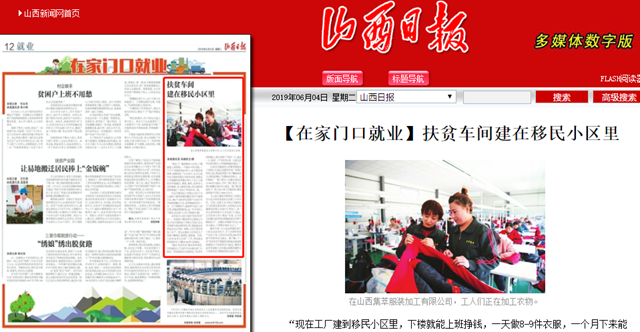 【山西日報】扶貧車間建在移民小區(qū)里