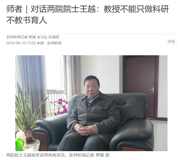 【澎湃新聞】對(duì)話兩院院士王越:教授不能只做科研不教書(shū)育人