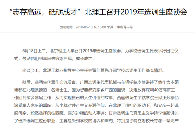 原文標(biāo)題:“志存高遠(yuǎn),砥礪成才”北理工召開(kāi)2019年選調(diào)生座談會(huì)