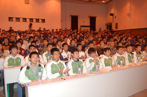 由學生工作處主辦的本學年第十期聆聽智慧名家系列講座于2006年11月15晚19:00在7號樓報告廳舉行,我校足球隊總教練金志揚教授為我校師生奉獻了一場精彩的“體育回歸教育”專題報告會,講座由學生工作處處長劉明奇同志主持。