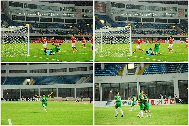 比賽于19:45準(zhǔn)時(shí)開戰(zhàn),開場(chǎng)后雙方節(jié)奏較為緩慢,有威脅的進(jìn)攻不多,看來雙方都想后發(fā)制人。10分鐘過后,中邦隊(duì)逐漸利用主場(chǎng)的優(yōu)勢(shì)掌握了場(chǎng)上的主動(dòng)。第26分鐘,前幾輪表現(xiàn)出色的中邦隊(duì)中場(chǎng)外援何塞禁區(qū)前接隊(duì)友妙傳抽射,皮球應(yīng)聲入網(wǎng),中邦隊(duì)在主場(chǎng)1:0先拔頭籌。