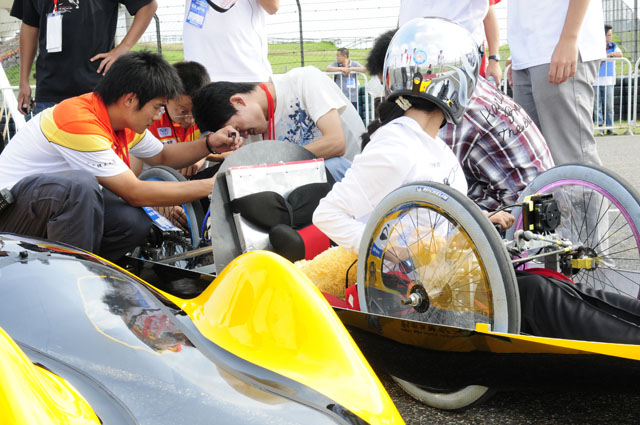 創(chuàng)辦于1981年的Honda節(jié)能競技大賽于2007年開始正式進(jìn)入中國,今年迎來了第三屆。本屆節(jié)能競技大賽以“挑戰(zhàn)一升、環(huán)保一生”為口號,要求參賽車輛使用統(tǒng)一的Honda 125cc低油耗4沖程發(fā)動機(jī),發(fā)動機(jī)以外的車架和車身等完全由各車隊(duì)獨(dú)立創(chuàng)作,賽車在上海賽車場賽道內(nèi)跑完指定賽程,最終來競技誰消耗的燃油更少。