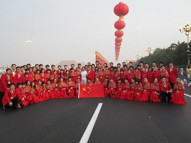 2009年10月1日凌晨3:00,有許多身著節(jié)日盛裝的同學(xué)陸續(xù)從北理工新1號學(xué)生公寓、11號宿舍樓、6號宿舍樓、碩博小區(qū)新5號樓、新2號樓等8個不同的學(xué)生公寓相繼出發(fā),這支特殊的演出隊伍在學(xué)校北門迅速完成集結(jié),乘車向第二集結(jié)地點進發(fā)。在祖國60周年慶典這一天,他們將在天安門廣場的國旗下,為祖國縱情高歌。