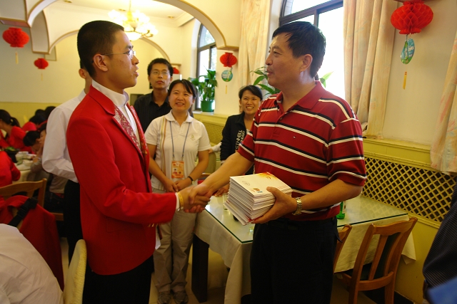 隨后,侯光明副書記親自為同學(xué)們頒發(fā)了“首都國慶60周年群眾游行紀念封”和國慶60周年群眾游行指揮部給同學(xué)們的“感謝信”。