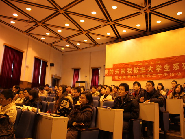 當(dāng)天戶(hù)外寒風(fēng)蕭瑟,報(bào)告廳內(nèi)卻是歡聲笑語(yǔ),暖意盎然。講座吸引了眾多畢業(yè)生參與,許多同學(xué)提前一個(gè)多小時(shí)就來(lái)到了報(bào)告廳等候。下午兩點(diǎn),講座正式開(kāi)始。國(guó)家人力資源和社會(huì)保障部就業(yè)促進(jìn)司高校畢業(yè)生就業(yè)處李祥偉副處長(zhǎng)從當(dāng)前高校畢業(yè)生總體就業(yè)形勢(shì),高校畢業(yè)生就業(yè)與創(chuàng)業(yè)政策措施,關(guān)于自主創(chuàng)業(yè)有關(guān)建議三個(gè)方面給同學(xué)們做了全面細(xì)致的指導(dǎo)。