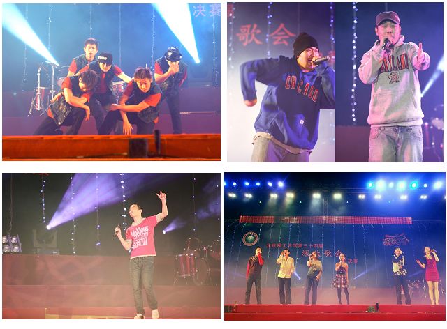 在國內(nèi)新銳hip-hop組合X-power火爆的舞蹈中,比賽正式拉開了帷幕。14位選手依次演唱了自己的參賽曲目。他們的表演各具風格,從同學們喜聞樂見的POP、讓人熱血沸騰的ROCK、極具風格的JAZZ,到頗具難度的美聲和民族唱法應有盡有。充分展現(xiàn)了北理工學子獨特的個人風采和不俗的音樂造詣。值得一提的是,在選手表演過程中,還特意請到了往屆的一些優(yōu)秀歌手為觀眾獻上他們的歌曲和祝福。校友劉燁的新歌《我的名字叫感恩》,深深地打動了現(xiàn)場的觀眾。由往屆深秋歌會獲獎選手組成,享譽北理的MELODY組合的深情獻唱,更是讓每位觀眾都沉浸其中。本屆歌會保留了傳統(tǒng)的PK環(huán)節(jié),但又增加了新的亮點。除了6名晉級選手自由結合成三組,進行組內(nèi)PK外,在第一輪PK中脫穎而出的三名選手還與往屆的優(yōu)秀歌手結組對唱,進行組間PK。特邀嘉賓爽子的登場,更是掀起了歌會的高潮。