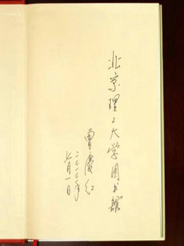 我校70周年校慶前夕,原國(guó)家副主席、我校校友曾慶紅同志向我校圖書館捐贈(zèng)了最新出版的《關(guān)于黨的建設(shè)工作》一書并親筆題詞。