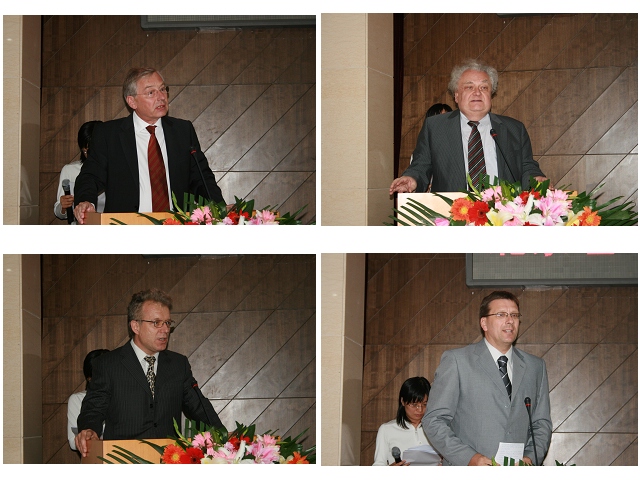 中心德方主任、卡爾斯魯厄大學(xué)文學(xué)研究所所長(zhǎng)烏韋•亞普教授(Uwe Japp)以及中心科研顧問(wèn)、斯圖加特大學(xué)哲學(xué)-歷史學(xué)院院長(zhǎng)、現(xiàn)代德語(yǔ)文學(xué)研究所所長(zhǎng)霍斯特•托美教授(Horst Thomé)分別就中心未來(lái)的發(fā)展方向、合作領(lǐng)域、合作方式等進(jìn)行了闡述;德意志聯(lián)邦共和國(guó)駐華使館公使銜文化參贊馮•馬丁先生(Martin Fleischer),德意志學(xué)術(shù)交流中心主任韓北山先生(Stefan Hase-Bergen)、德國(guó)科學(xué)基金會(huì)中德科學(xué)中心德方副主任趙妙根教授以及歌德學(xué)院(中國(guó))德語(yǔ)教學(xué)合作處主任胡朵拉(Cordula Hunold)博士分別向“德國(guó)語(yǔ)言文化研究中心”的成立表示衷心的祝賀。