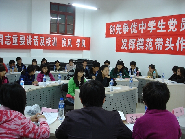 隨后同學(xué)們分別就如何將校訓(xùn)、校風(fēng)、學(xué)風(fēng)落實到各自的學(xué)習(xí)、工作和生活展開了討論,并對如何加強黨團支部建設(shè)、黨員教育、監(jiān)督與考核、黨建帶好團帶、以評促進等工作提出建議和意見。