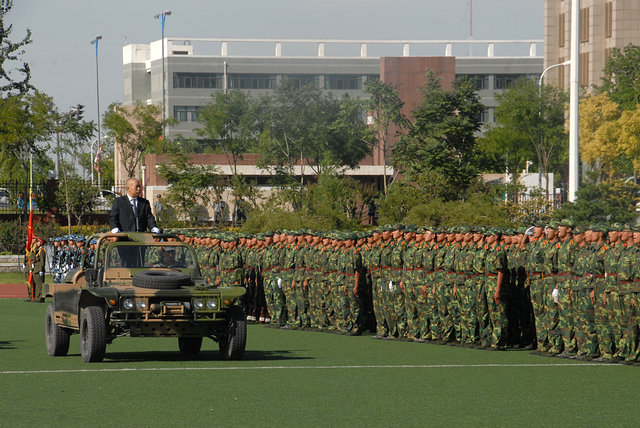 9月9日下午,北京理工大學(xué)2011年軍訓(xùn)閱兵典禮在良鄉(xiāng)校區(qū)隆重舉行。北京理工大學(xué)黨委書記郭大成,中國工程院院士周立偉,副校長楊賓,副校長趙平,黨委副書記、副校長李和章,房山區(qū)武裝部副部長王慶文中校、66166部隊(duì)副政委閆家文中校,66011部隊(duì)營教導(dǎo)員溫巖中校,及學(xué)校各部處、學(xué)院領(lǐng)導(dǎo)出席典禮。閱兵典禮上分別進(jìn)行了閱兵式、分列式和軍事科目表演。