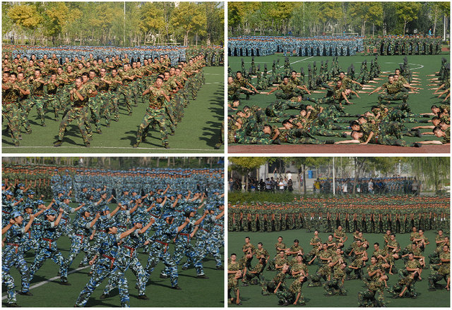 軍事科目表演中,由軍訓(xùn)旅六個營組成的七個表演方陣,分別進(jìn)行了捕俘刀、一招制敵、綜合格斗術(shù)和刺殺操等科目的表演。各表演方陣動作標(biāo)準(zhǔn),氣勢如虹。