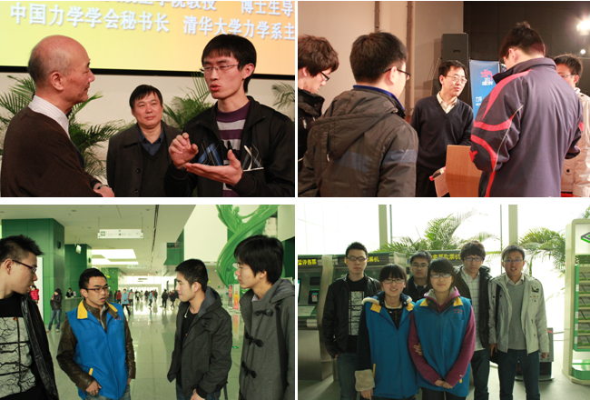 為了更好地調(diào)動大家積極性、擴(kuò)展其眼界和思維、增強(qiáng)其人際交往能力,團(tuán)校還組織所有參訓(xùn)人員走訪了中國科技館。首先,大家來到“2012中國力學(xué)年”活動現(xiàn)場,和中國力學(xué)學(xué)會秘書長馮西橋(右上圖)、中國力學(xué)學(xué)會科普工作委員會主任委員朱克勤等老師(左上圖)就“身邊的力學(xué)”為主題進(jìn)行了面對面互動交流,充分體會到技術(shù)的趣味性和科學(xué)性,感受到了科學(xué)技術(shù)在國民經(jīng)濟(jì)建設(shè)中的重要作用。期間,大家就學(xué)術(shù)活動的組織工作與中國科學(xué)院院士工作局傅敏處長和中國科技館相關(guān)工作人員等進(jìn)行了溝通學(xué)習(xí)。隨后,大家參觀了中國科技館主展廳和中國古代機(jī)械展,特別結(jié)合自己的學(xué)科背景再次切身體會了科學(xué)的奧秘;現(xiàn)場新穎的展臺布置、規(guī)范的現(xiàn)場管理、前沿的科學(xué)技術(shù)對大家的活動策劃和組織協(xié)調(diào)提供了很多啟發(fā)。在參觀的過程中,部分從事志愿服務(wù)管理的學(xué)生干部還走訪了現(xiàn)場的學(xué)生志愿者,就其工作模式、能力要求、社會反響等進(jìn)行了調(diào)研。