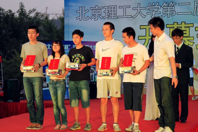 比賽現(xiàn)場,還頒發(fā)了今年上半年由機械與車輛學院牽頭進行的“北京理工大學2012年車身設計大賽”最具中國風獎、最佳方程式獎、最佳創(chuàng)意車型獎等獎項,現(xiàn)場發(fā)放了獲獎證書和汽車模型作為獎品。
