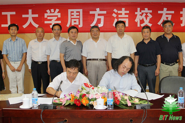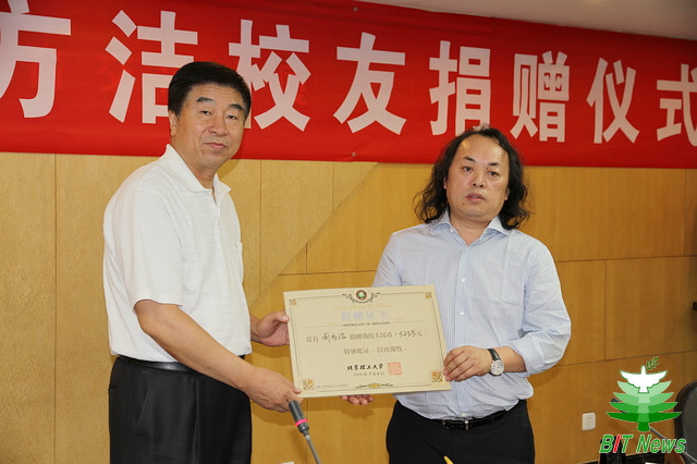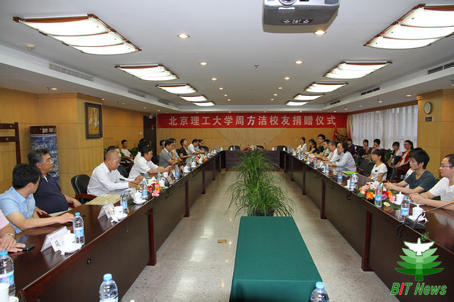 2012年9月4日,北京理工大學周方潔校友捐贈儀式在國際教育交流大廈第一會議室隆重舉行。黨委書記郭大成、校長胡海巖、副校長楊賓、趙長祿、孫逢春,副書記、副校長李和章,對外工作委員會主任、原黨委書記焦文俊,寧波理工監(jiān)測科技股份有限公司董事長周方潔校友共同出席了會議。學校辦、校友會辦公室、對外工作委員會、財務處、教育基金會、學工處、團委、管理與經(jīng)濟學院等部門負責人以及學生代表參加了會議。儀式由楊賓副校長主持。為支持北京理工大學教育事業(yè)的發(fā)展,獎勵表現(xiàn)優(yōu)異的理工學子,支持學生們的創(chuàng)新實踐活動,周方潔校友向學校捐贈人民幣1325萬元。