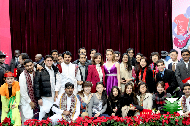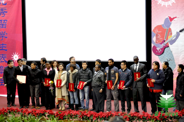 2012年12月18日星期二晚七點(diǎn)整, 北京理工大學(xué)優(yōu)秀留學(xué)生表彰大會暨迎新年聯(lián)歡晚會在中心教學(xué)樓一層報(bào)告廳隆重舉行,來自50多個不同國家和地區(qū)的500余名在校留學(xué)生與老師們、各學(xué)院和職能部處領(lǐng)導(dǎo)、外國駐華使領(lǐng)館代表歡聚一堂,共迎新春!