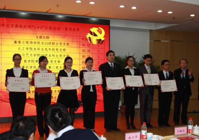 經(jīng)過激烈角逐,北京理工大學設計與藝術(shù)學院2009級本科生黨支部最終以第三名的好成績獲得北京高校紅色“1+1”活動一等獎,市委教育工委副書記唐立軍為獲獎黨支部進行了頒獎。