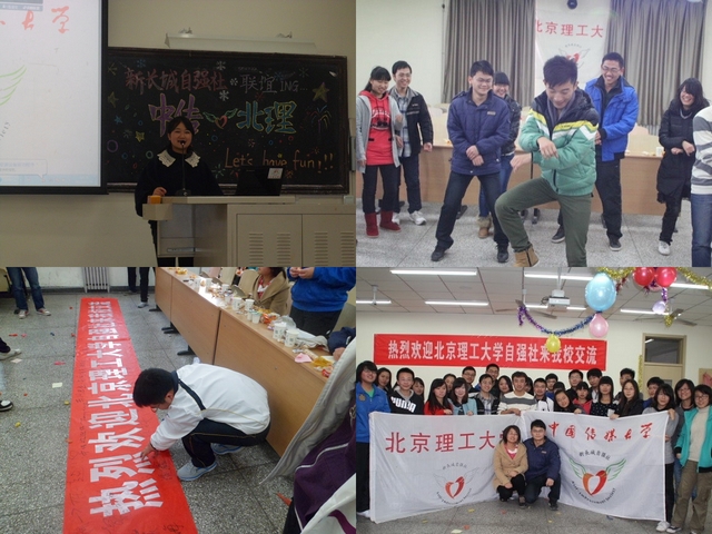 2012年11月25日,北理工自強(qiáng)社到中國(guó)傳媒大學(xué),與中國(guó)傳媒大學(xué)自強(qiáng)社就社團(tuán)組織建設(shè)、活動(dòng)開(kāi)展和工作經(jīng)驗(yàn)等內(nèi)容進(jìn)行了廣泛的交流。兩校自強(qiáng)社分別就社團(tuán)組織建設(shè)、特色活動(dòng)等方面做了介紹和展示。為加深兄弟社團(tuán)間的了解,交流過(guò)程中穿插了小游戲環(huán)節(jié),一個(gè)接一個(gè)的小游戲使現(xiàn)場(chǎng)氣氛變得熱烈,也增進(jìn)了兩校自強(qiáng)社間的友誼。通過(guò)交流,自強(qiáng)社成員更加了解自身優(yōu)勢(shì),同時(shí)也看到了自身的不足。參與交流的成員會(huì)后一致表示今后會(huì)借鑒對(duì)方的成功經(jīng)驗(yàn),繼續(xù)發(fā)揚(yáng)自身優(yōu)勢(shì),努力改進(jìn)不足之處,把北京理工大學(xué)自強(qiáng)社越辦越好。