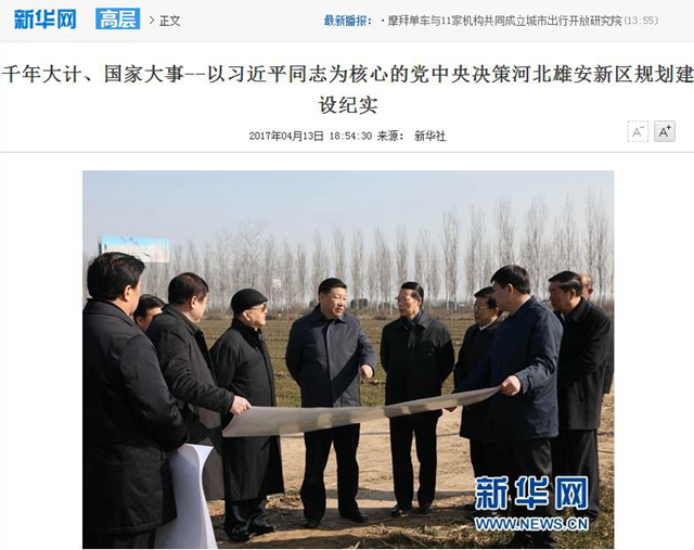 設立雄安新區(qū)的消息在海內(nèi)外引起強烈反響。