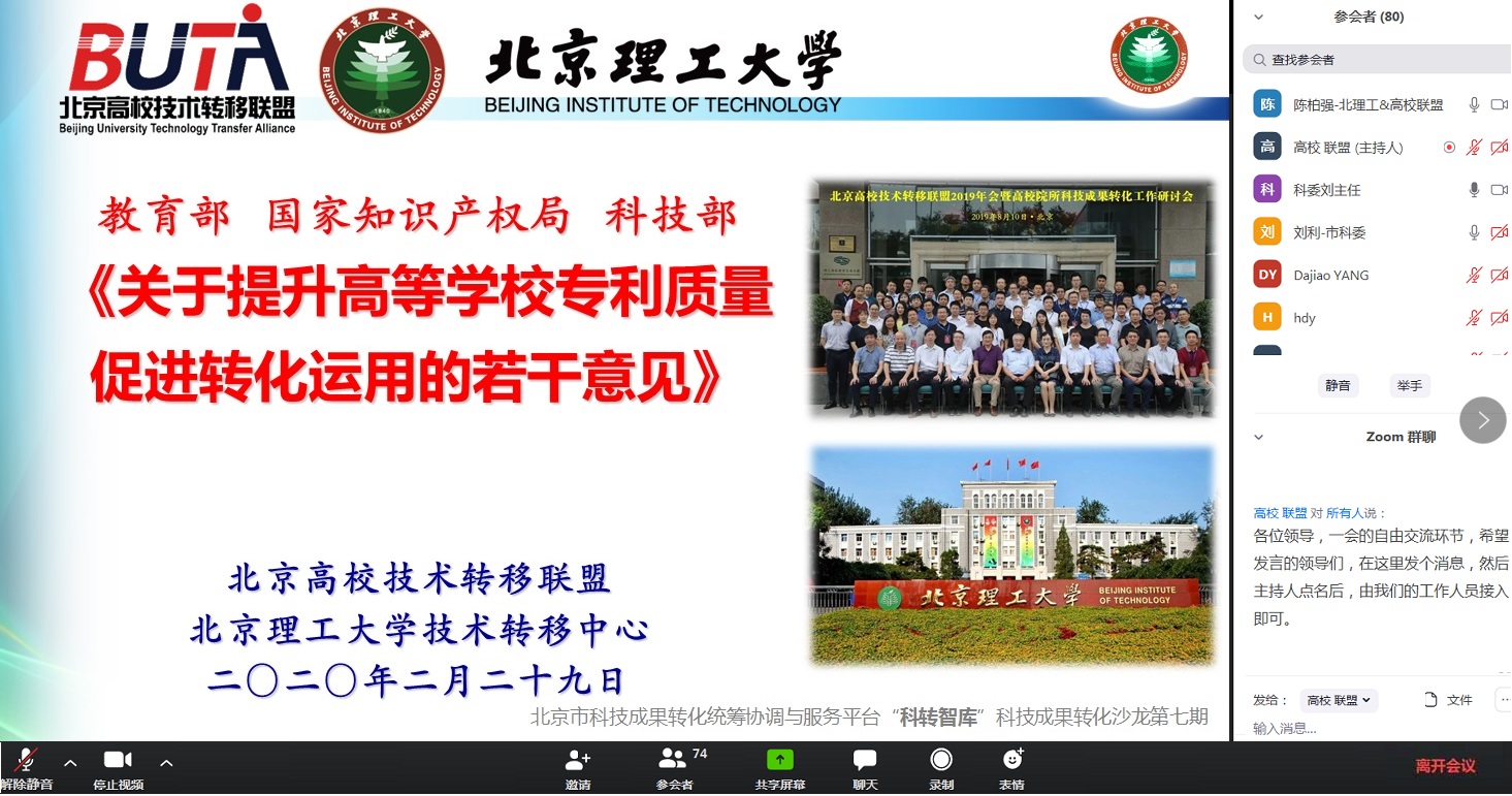 北理工組織高校貫徹落實高校專利《若干意見》在線研討會