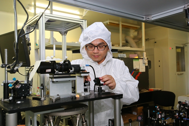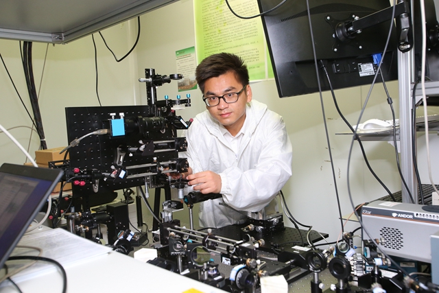 李博在實(shí)驗(yàn)室進(jìn)行光路校準(zhǔn)操作