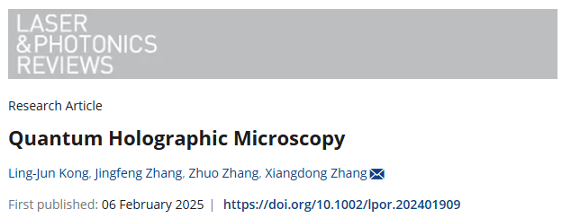 近日,北京理工大學物理學院張向東教授課題組基于偏振糾纏量子全息技術(shù),實現(xiàn)了量子全息顯微。相關(guān)成果以“Quantum Holographic Microscopy”為題發(fā)表在Laser & Photonics Reviews 期刊[Laser Photonics Rev. 2025, 2401909]上。北京理工大學物理學院孔令軍研究員、張景風博士生為該論文的共同第一作者,北京理工大學物理學院張向東教授為論文通訊作者,北京理工大學物理學院張卓研究生也為該工作做出了重要貢獻。該研究工作得到了國家自然科學基金委的支持。