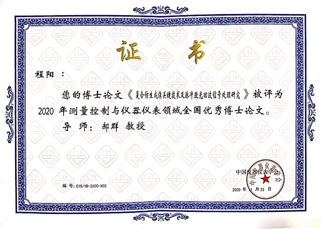 ?北理工學子獲中國儀器儀表學會優(yōu)秀博士論文獎和提名獎