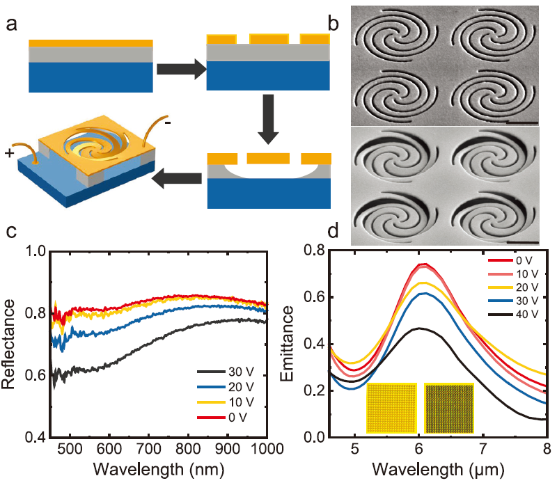 圖2. 螺旋線形動(dòng)態(tài)熱輻射超表面器件的實(shí)現(xiàn)