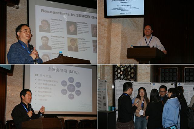 會(huì)議由三個(gè)特邀報(bào)告、四個(gè)大會(huì)報(bào)告和51個(gè)展示報(bào)告組成。三個(gè)特邀報(bào)告分別是北京大學(xué)信息學(xué)院査紅彬教授“基于成像幾何和結(jié)構(gòu)先驗(yàn)的三維場(chǎng)景建模”、中國(guó)科學(xué)院自動(dòng)化所蔣田仔教授“腦網(wǎng)絡(luò)組--理解腦及腦疾病的新途徑”、清華大學(xué)信息學(xué)院張長(zhǎng)水教授“稀疏學(xué)習(xí)中的優(yōu)化算法”。三位教授都是本領(lǐng)域的領(lǐng)軍學(xué)者,他們深入淺出、高屋建瓴的報(bào)告,引起了參會(huì)者的很大興趣和熱烈討論。