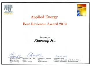 本次大會(huì)還對ICAE2013最佳論文、《Applied Energy》雜志2012?2013年高被引論文和2014年最佳審稿人進(jìn)行了頒獎(jiǎng),我校協(xié)同創(chuàng)新中心何洪文教授課題組于2012年發(fā)表的學(xué)術(shù)論文獲得高被引論文獎(jiǎng),孫逢春教授指導(dǎo)的胡曉松博士獲得2014年最佳審稿人獎(jiǎng)。
