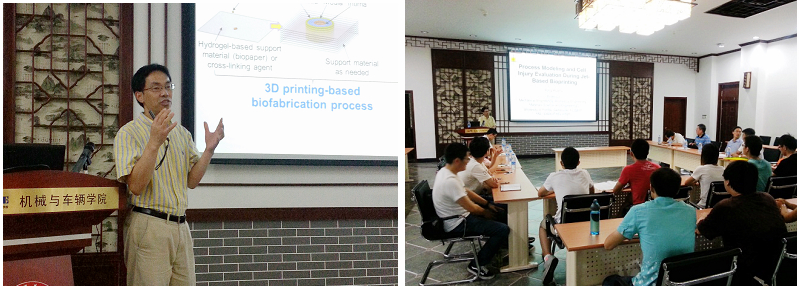 2015年6月29日,應(yīng)機(jī)械與車輛學(xué)院制造工程系邀請,美國佛羅里達(dá)大學(xué)機(jī)械與航天工程學(xué)院黃勇教授來我校交流訪問,并做了題為“Process Modeling and Cell Injury Evaluation During Jet-based Bioprinting”的研究報(bào)告,介紹了細(xì)胞打印領(lǐng)域的新成果。制造工程系王西彬教授、馬樹元教授、周天豐教授,以及30余名教師和研究生參加了此次學(xué)術(shù)報(bào)告,并與黃勇教授進(jìn)行了互動交流。學(xué)術(shù)報(bào)告由王西彬教授主持。