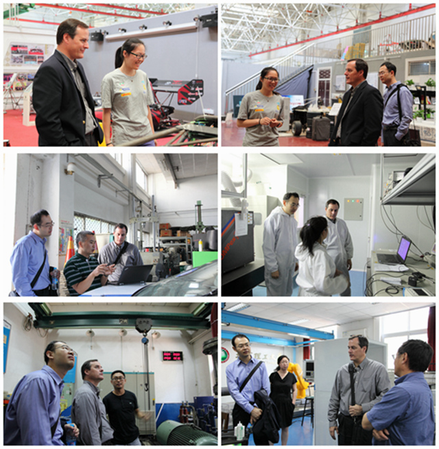 Landers教授及李鳴揚(yáng)博士參觀了學(xué)院的學(xué)生創(chuàng)新中心、激光微納實(shí)驗(yàn)室、智能車輛實(shí)驗(yàn)室、檢測(cè)與控制研究所及發(fā)動(dòng)機(jī)研究所等實(shí)驗(yàn)室和研究所,學(xué)院相關(guān)部門的負(fù)責(zé)人陪同Landers教授及李鳴揚(yáng)博士進(jìn)行參觀,并做了細(xì)致的講解。Landers教授一行在參觀過(guò)程中,提出了一些自己感興趣的問(wèn)題,通過(guò)和實(shí)驗(yàn)室老師及學(xué)生的交流中,對(duì)學(xué)院目前取得的科研成果,有了深入的了解。