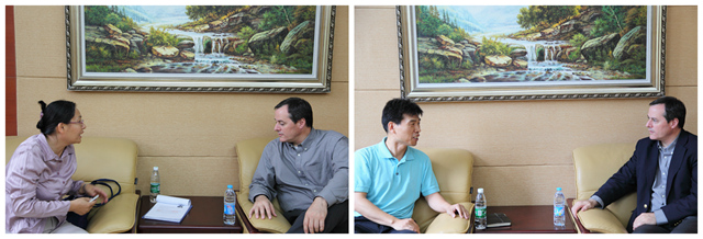 結(jié)束參觀實(shí)驗(yàn)室后,Landers教授分別與我院張發(fā)平、張敏弟教授進(jìn)行了一對(duì)一的交流,通過(guò)這種新穎的會(huì)談方式,就雙方學(xué)術(shù)、科研等方面的進(jìn)展進(jìn)行分享,并就學(xué)院與密蘇里科技大學(xué)交換生的事宜進(jìn)行了洽談。