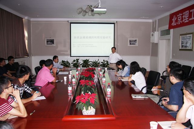 喜逢北京理工大學(xué)75周年校慶,學(xué)校組織開(kāi)展“求是”高層人才學(xué)術(shù)論壇系列活動(dòng)。9月17日上午,應(yīng)北京理工大學(xué)邀請(qǐng),中國(guó)科學(xué)院力學(xué)研究所研究員,中國(guó)科學(xué)院院士王自強(qiáng)在三號(hào)樓一層宇航學(xué)院會(huì)議室做了“塊狀金屬玻璃的純剪實(shí)驗(yàn)研究”學(xué)術(shù)報(bào)告。北京理工大學(xué)人事處處長(zhǎng)韓寶玲教授,宇航學(xué)院院長(zhǎng)胡更開(kāi)教授,宇航學(xué)院力學(xué)系老師于洋副教授、劉廣彥副教授以及宇航學(xué)院的研究生參加聽(tīng)取了報(bào)告會(huì),報(bào)告會(huì)由宇航學(xué)院力學(xué)系主任季葆華教授主持。