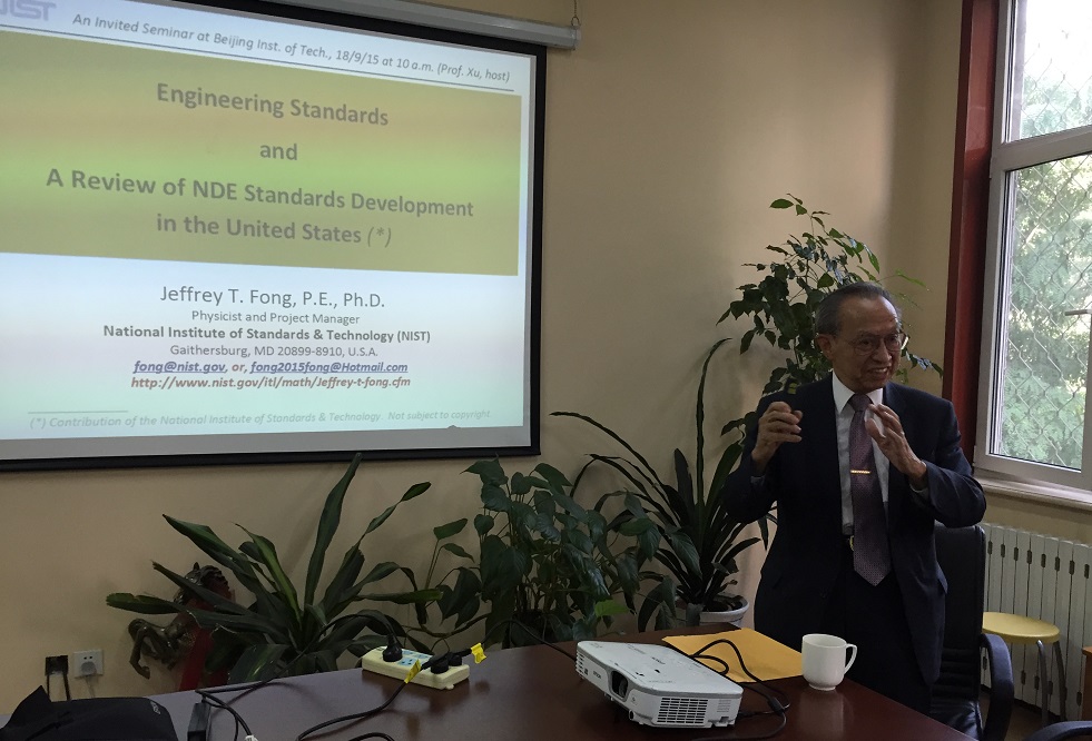 2015年9月18日,應(yīng)機(jī)械與車輛學(xué)院徐春廣教授邀請, 美國國家科技標(biāo)準(zhǔn)研究院資深學(xué)者、美國費(fèi)城德雷塞爾與加州斯坦福兩所大學(xué)客座教授、美籍華人方資慧博士來我校先進(jìn)加工技術(shù)重點(diǎn)學(xué)科實(shí)驗(yàn)室進(jìn)行訪問交流。機(jī)械與車輛學(xué)院院長姜瀾教授代表學(xué)院對方博士的到訪表示歡迎,并向方博士介紹了學(xué)院的情況。訪問期間,方博士為師生作了題為 “美國技術(shù)標(biāo)準(zhǔn)的發(fā)展及無損檢測技術(shù)標(biāo)準(zhǔn)回顧”的學(xué)術(shù)報(bào)告,無償捐贈(zèng)統(tǒng)計(jì)分析軟件,并教授同學(xué)們?nèi)绾问褂谩?/p>