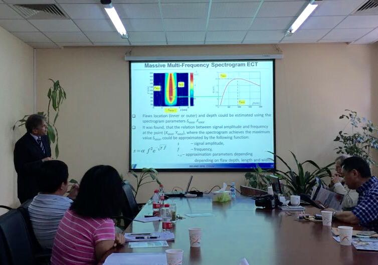 6月25日下午,Terry Clausing教授與Tomasz Chady教授參觀了機(jī)械與車輛學(xué)院檢測(cè)與控制研究中心。6月26日上午,Terry Clausing教授作了題為《熱分析:狀態(tài)監(jiān)測(cè)與無損檢測(cè)》(Thermal Analysis: Condition Monitoring and Nondestructive Testing)的學(xué)術(shù)報(bào)告,分別介紹了紅外熱成像無損檢測(cè)技術(shù)在電力、制造和軍事等行業(yè)中的應(yīng)用,并向師生展示和指導(dǎo)使用微型紅外攝像機(jī)檢測(cè)軍用直升機(jī)某種內(nèi)壁材料中液體的位置。Tomasz Chady教授作了題為《電磁無損檢測(cè)技術(shù)的數(shù)據(jù)融合》(FusionOfData From Electromagnetic Methods of NDT)的學(xué)術(shù)報(bào)告,分別介紹了大規(guī)模多頻光譜電渦流檢測(cè)技術(shù)、電磁測(cè)量與檢測(cè)技術(shù)、VFLM交流矢量漏磁檢測(cè)技術(shù)與時(shí)域太赫茲光譜學(xué)和高動(dòng)態(tài)范圍X射線檢測(cè)技術(shù)的原理、數(shù)據(jù)融合與應(yīng)用。兩位教授回答了師生提出的問題,開拓了師生在無損檢測(cè)研究領(lǐng)域中學(xué)術(shù)視野。