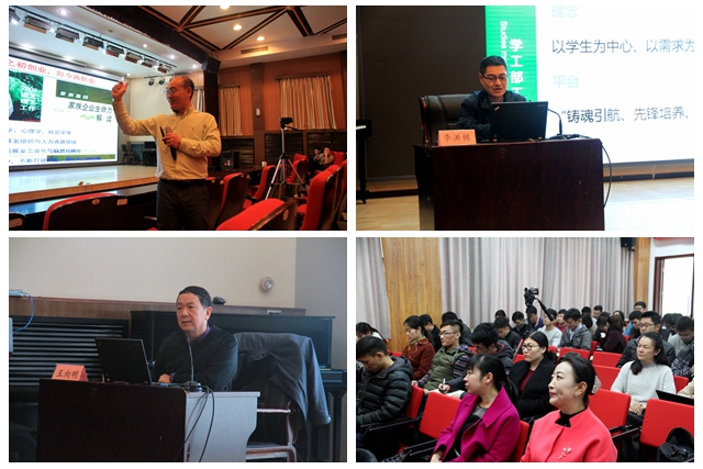 為促進我校輔導員理論學習、科學研究和素質提升,學生工作處在11月舉辦了“輔導員學術活動月”活動,組織系列專家報告七場。邀請了大學生思想政治教育專家和學者來校為專職學生工作干部進行大學生思想政治教育政策解讀、理論培訓及經驗交流等。全體專兼職學生工作干部參加了學習。