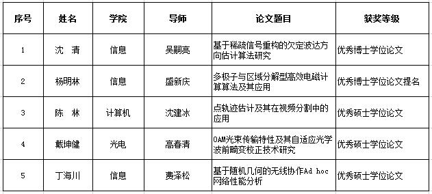 2016年9月收到中國電子學會通知后,研究生院高度重視,積極組織各學院進行申報,在各學院及導師、研究生的共同努力下,最終北理工2名博士生、3名碩士生獲得優(yōu)秀學位論文獎,獲獎總篇數(shù)與上海交通大學、電子科技大學、北京郵電大學并列位居全國高校第二名(清華大學位居第一名)。