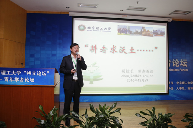 陳杰做了題為《耕者求沃土》的大會報告,代表學(xué)校向參會學(xué)者介紹學(xué)??萍及l(fā)展?fàn)顩r。他用生動幽默的語言,圍繞“為什么要加入北理工和加入到北理工之后如何發(fā)展”,詳細介紹了北理工的研究平臺、學(xué)術(shù)成就以及發(fā)展規(guī)劃。他用直觀的數(shù)據(jù)表明低調(diào)、樸實的北理工是一片可供耕耘的沃土。北理工擁有著多個優(yōu)勢學(xué)科領(lǐng)域,可為青年學(xué)者事業(yè)發(fā)展提供強有力的支撐。例如,在機械領(lǐng)域,北理工是裝甲車輛和電動車輛的奠基者和締造者;在電子信息領(lǐng)域,北理工是雷達技術(shù)的領(lǐng)跑者;在航空航天領(lǐng)域,北理工是制導(dǎo)控制技術(shù)的領(lǐng)軍者;在材料科學(xué)領(lǐng)域,北理工是裝甲與反裝甲材料領(lǐng)域的核心力量。在其他很多領(lǐng)域,如微納制造、大數(shù)據(jù)、語音識別、石墨烯材料等研究方向也都在國內(nèi)外具有很大的影響力。同時,為幫助青年教師快速成長,學(xué)校設(shè)立多個成果轉(zhuǎn)化平臺。學(xué)校與地方政府、相關(guān)企業(yè)建立起長期的合作關(guān)系,搭建了多個產(chǎn)學(xué)研創(chuàng)新平臺,合作戰(zhàn)略伙伴遍布全國,幫助青年教師將研究理論和研究成果應(yīng)用到實踐中,做到真正意義上的理論與實踐結(jié)合。報告最后,他指出,就像一棵植物需要肥沃的土地、適宜的氣候、精心的呵護才能茁壯成長、開花結(jié)果一樣,青年教師的進步成長取決于優(yōu)秀的科研平臺、良好的工作環(huán)境以及管理人員貼心的服務(wù)。他強調(diào),學(xué)校將緊緊圍繞“創(chuàng)新驅(qū)動,協(xié)調(diào)發(fā)展,交叉融合,持續(xù)提升”的科技工作目標(biāo),秉承“科技引領(lǐng)、創(chuàng)新服務(wù)、追求卓越”的科技工作理念,主動服務(wù)各位青年學(xué)者。