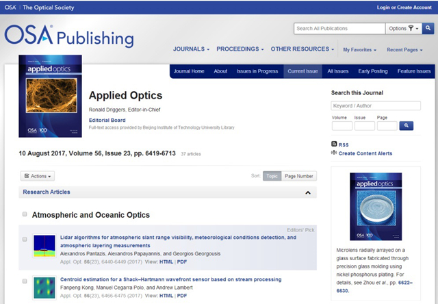 美國《Applied Optics》雜志封面刊登北理工光學(xué)微透鏡陣列制造最新成果