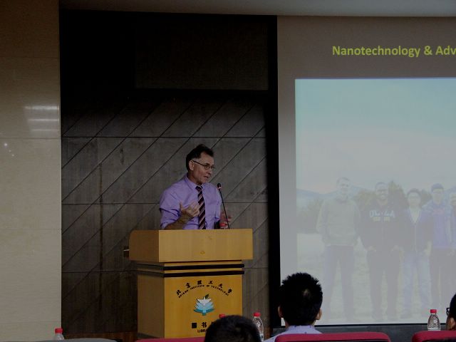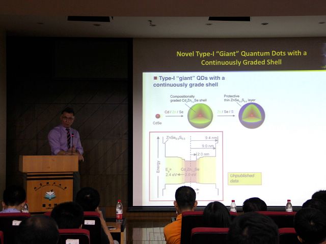 9月21日上午,在圖書館報(bào)告廳,北京理工大學(xué)材料學(xué)院、物理學(xué)院以及北京其他兄弟院校的100余名教師和學(xué)生聆聽(tīng)了學(xué)術(shù)報(bào)告。Victor I. Klimov教授作了題為“Recent advances in colloidal-quantum-dot lasing:From zero-threshold optical gain to solution-processible laser diodes”的精彩學(xué)術(shù)報(bào)告,介紹了他本人課題組在量子點(diǎn)光學(xué)物理研究方面的原創(chuàng)性研究歷程及最新研究成果,報(bào)告深入淺出,大家爭(zhēng)相提問(wèn),現(xiàn)場(chǎng)氣氛熱烈,講座在大家的欲猶未盡中結(jié)束?! ?/p>