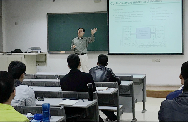 作為北京理工大學(xué)的客座教授,朱國明教授直接參與了機(jī)械與車輛學(xué)院研究生課程《動力機(jī)械控制工程》的授課及課程建設(shè),本次授課已經(jīng)是他第三次參與該課程的教學(xué)活動,朱教授以他在內(nèi)燃機(jī)燃燒過程閉環(huán)控制領(lǐng)域的最新研究成果為例,為學(xué)生講授了面向控制的建模和基于模型的控制。使得同學(xué)們在課程內(nèi)容學(xué)習(xí)的同時,分享到了內(nèi)燃機(jī)控制領(lǐng)域的前沿科技成果,也使得參與聽課的學(xué)院其他研究生受益匪淺。