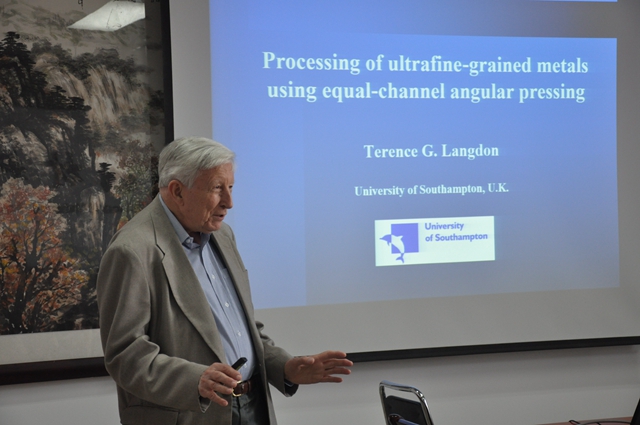 4月10號下午,Langdon教授在5號樓502會議室作題為“Processing of ultrafine-grained metals using Equal-channel angular pressing”的報告,詳細介紹了劇烈塑性變形等通道角擠壓(ECAP)技術(shù)的研究進展和學(xué)術(shù)成果,并與參會師生進行了深入的交流和討論。