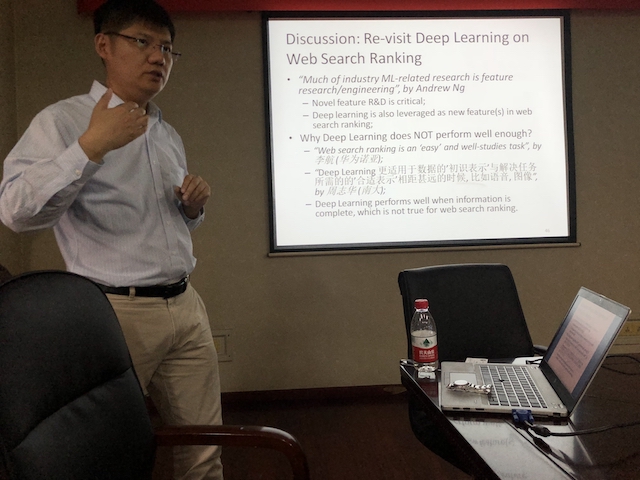 在講座中,常毅教授首先介紹了互聯(lián)網(wǎng)搜索行業(yè)所面臨的一些問題與困境,并闡明搜索精準(zhǔn)度對于互聯(lián)網(wǎng)搜索引擎的重要意義。進(jìn)而對搜索精確度的具體方法進(jìn)行枚舉闡述。常毅教授主要從排序?qū)W習(xí)和系統(tǒng)工程兩個層面上介紹該領(lǐng)域和進(jìn)行工作展望。他深入淺出的報告和獨到見解令在座師生都有所收獲。